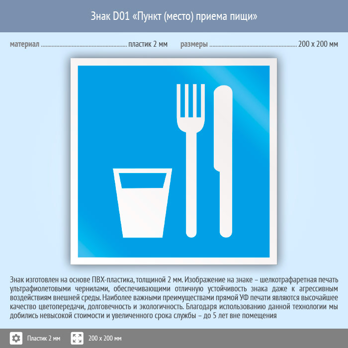 Знак D01 «Пункт (место) приема пищи» (пластик, 200х200 мм) в Новокузнецке купить