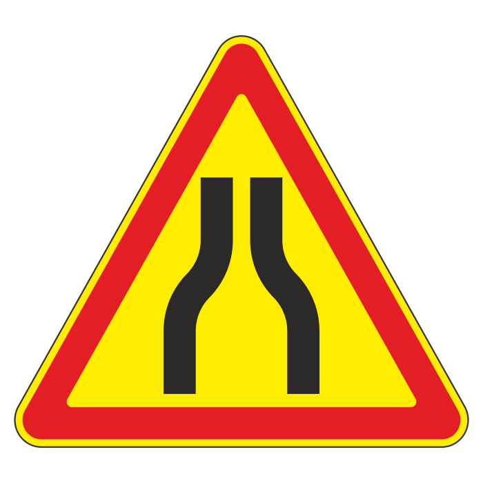 Дорожный знак 1.20.1 «Сужение дороги» (временный) (металл 0,8 мм, I типоразмер: сторона 700 мм, С/О пленка: тип В алмазная) в Новокузнецке купить