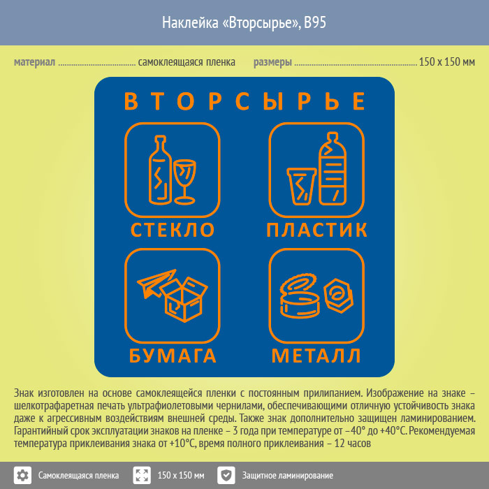 Наклейка на бак «Вторсырьё», B95 (пленка c ламинированием, 150х150 мм) в Новокузнецке купить