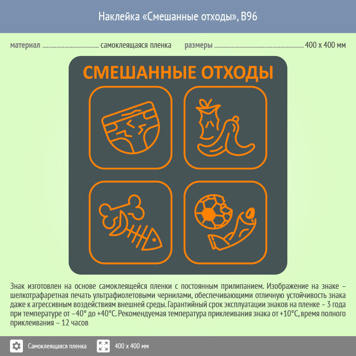 Наклейка на бак «Смешанные отходы», B96 (пленка, 400х400 мм) в Новокузнецке купить