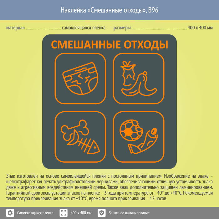 Наклейка на бак «Смешанные отходы», B96 (пленка c ламинированием, 400х400 мм) в Новокузнецке купить
