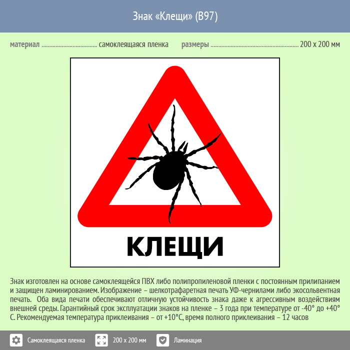 Знак «Клещи», B97 (пленка c ламинированием, 300х300 мм) в Новокузнецке купить
