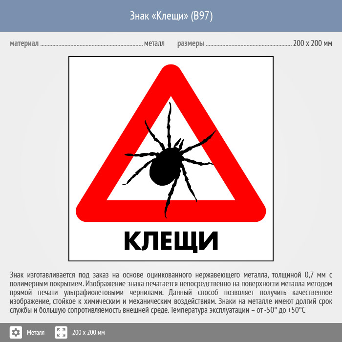 Знак «Клещи», B97 (металл, 300х300 мм) в Новокузнецке купить