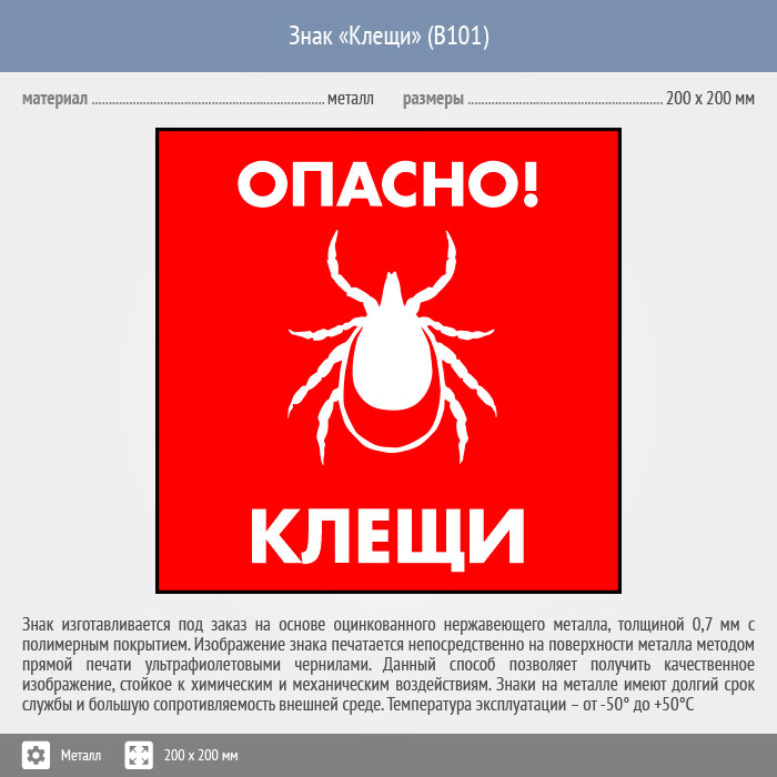 Знак «Опасно! Клещи», B101 (металл, 200х200 мм) в Новокузнецке купить