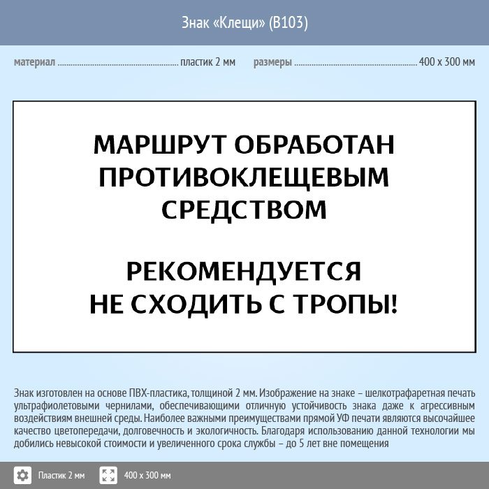 Знак «Клещи», B103 (пластик, 300х200 мм) в Новокузнецке купить