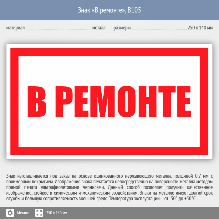 Знак «В ремонте», B105 (металл, 250х140 мм) в Новокузнецке купить