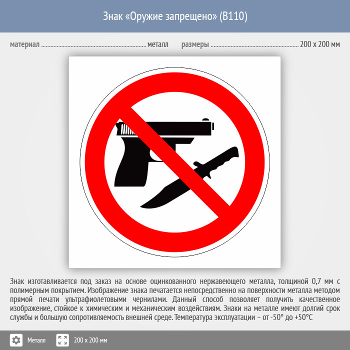 Знак «Оружие запрещено», B110 (металл, 200х200 мм) в Новокузнецке купить