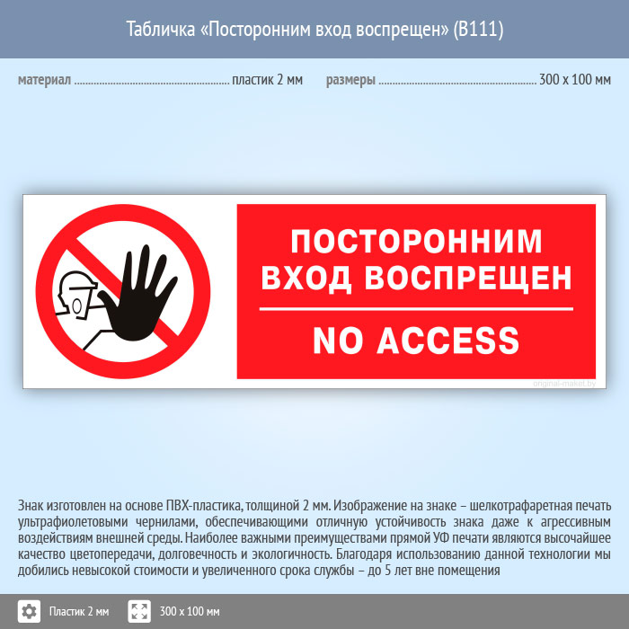 Табличка «Посторонним вход воспрещен», B111 (пластик, 300х100 мм) в Новокузнецке купить