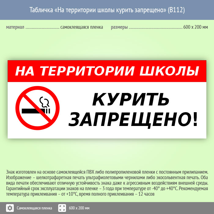 Табличка «На территории школы курить запрещено», B112 (пленка, 600х200 мм) в Новокузнецке купить