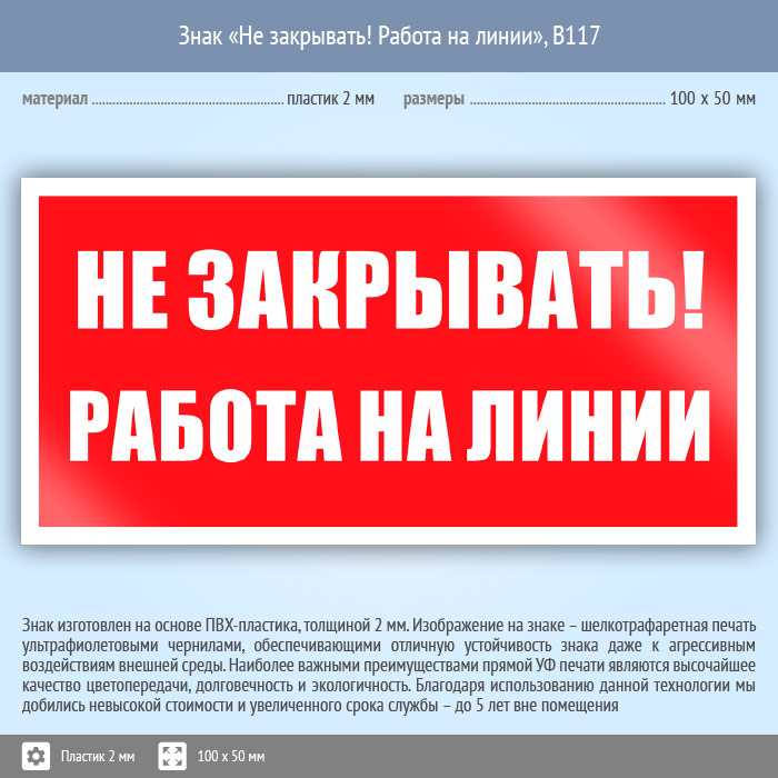 Знак «Не закрывать! Работа на линии», B117 (пластик, 100х50 мм) в Новокузнецке купить
