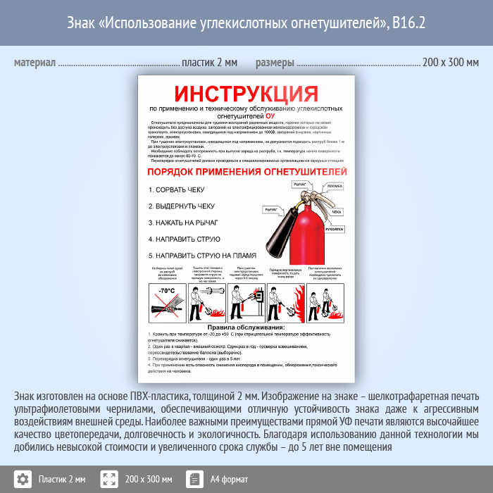 Знак «Использование углекислотных огнетушителей», B16.2 (пластик, 200х300 мм) в Новокузнецке купить