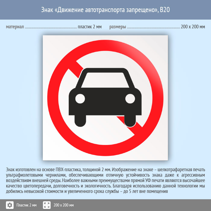 Знак «Движение автотранспорта запрещено», B20 (пластик, 200х200 мм) в Новокузнецке купить