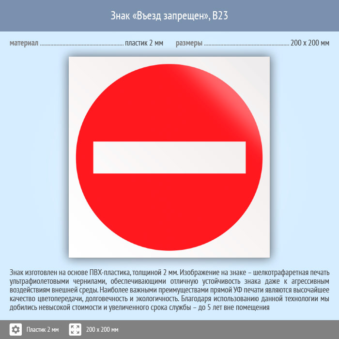 Знак «Въезд запрещен», B23 (пластик, 200х200 мм) в Новокузнецке купить