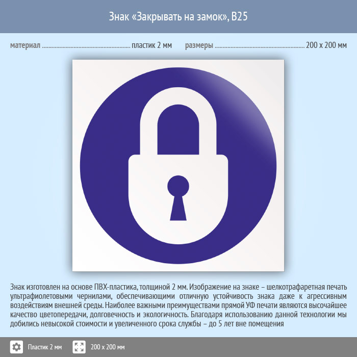 Знак «Закрывать на замок», B25 (пластик, 200х200 мм) в Новокузнецке купить