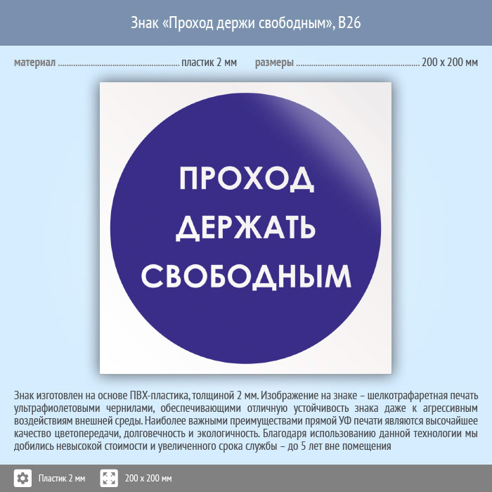 Знак «Проход держи свободным», B26 (пластик, 200х200 мм) в Новокузнецке купить