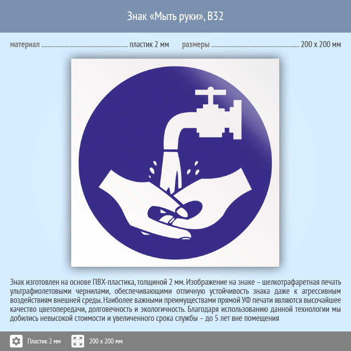 Знак «Мыть руки», B32 (пластик, 200х200 мм) в Новокузнецке купить