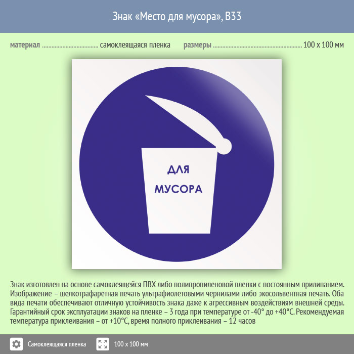 Знак «Место для мусора», B33 (пленка, 100х100 мм) в Новокузнецке купить