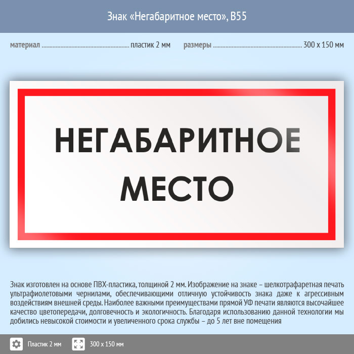 Знак «Негабаритное место», B55 (пластик, 300х150 мм) в Новокузнецке купить