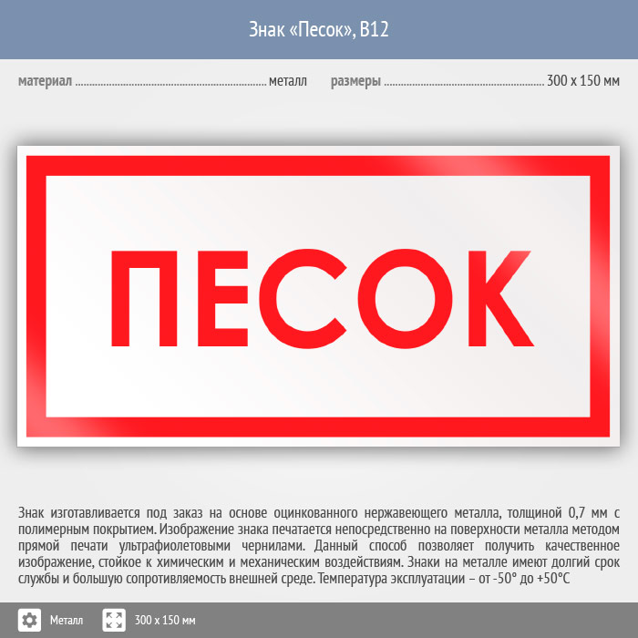 Знак «Песок», B12 (металл, 300х150 мм) в Новокузнецке купить