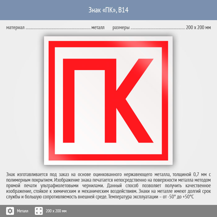 Знак «ПК», B14 (металл, 200х200 мм) в Новокузнецке купить