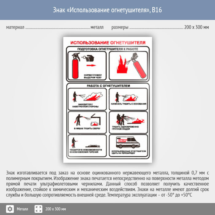 Знак «Использование огнетушителя», B16 (металл, 200х300 мм) в Новокузнецке купить