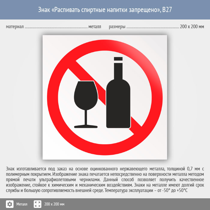 Знак «Распивать спиртные напитки запрещено», B27 (металл, 200х200 мм) в Новокузнецке купить