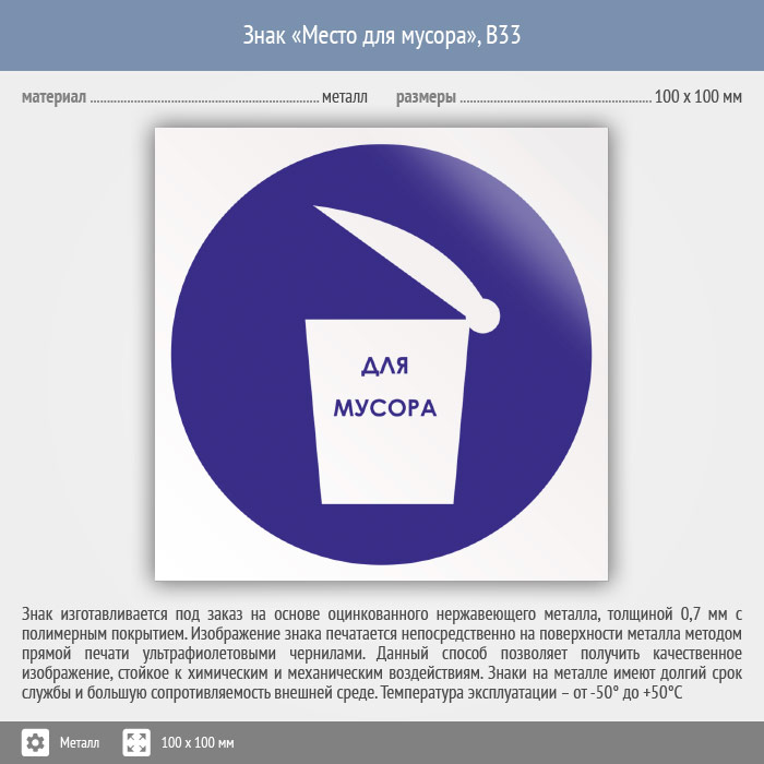 Знак «Место для мусора», B33 (металл, 100х100 мм) в Новокузнецке купить