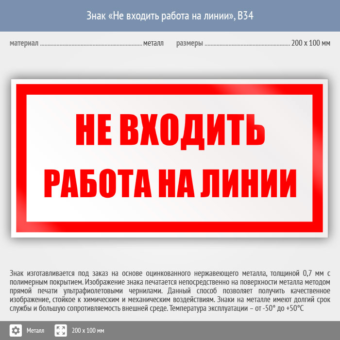 Знак «Не входить работа на линии», B34 (металл, 200х100 мм) в Новокузнецке купить