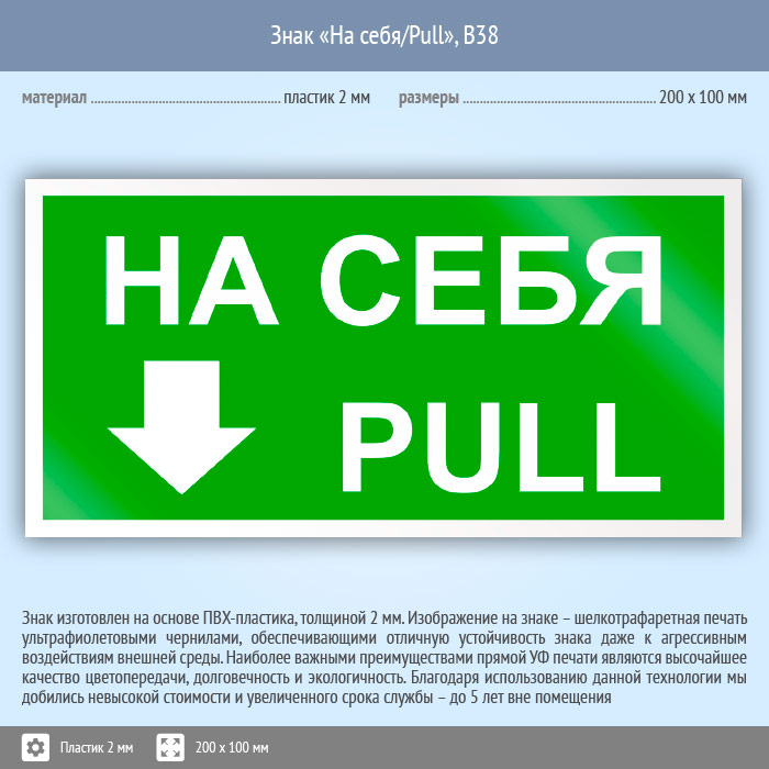 Знак «На себя/Pull», B38 (пластик, 200х100 мм) в Новокузнецке купить