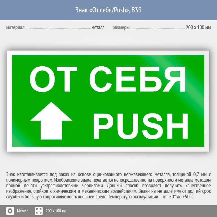 Знак «От себя/Push», B39 (металл, 200х100 мм) в Новокузнецке купить