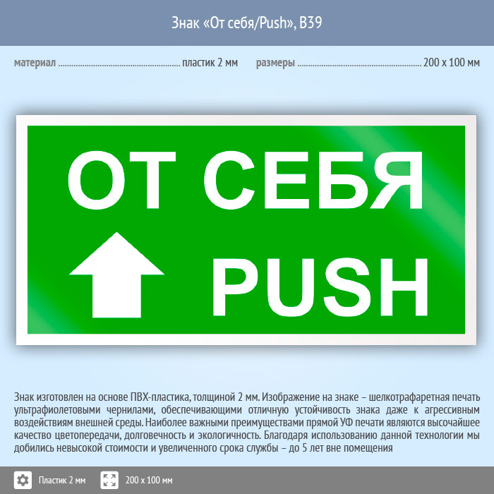 Знак «От себя/Push», B39 (пластик, 200х100 мм) в Новокузнецке купить