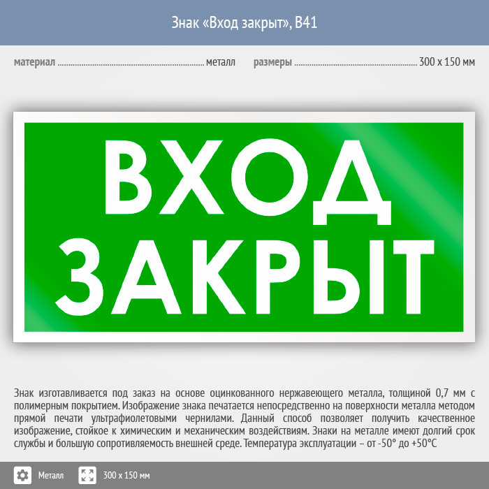 Знак «Вход закрыт», B41 (металл, 300х150 мм) в Новокузнецке купить