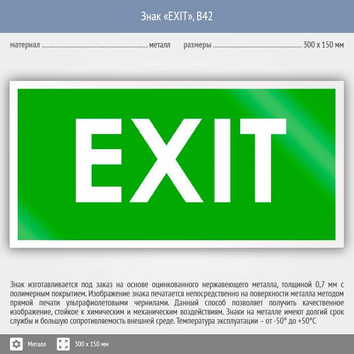Знак «EXIT», B42 (металл, 300х150 мм) в Новокузнецке купить