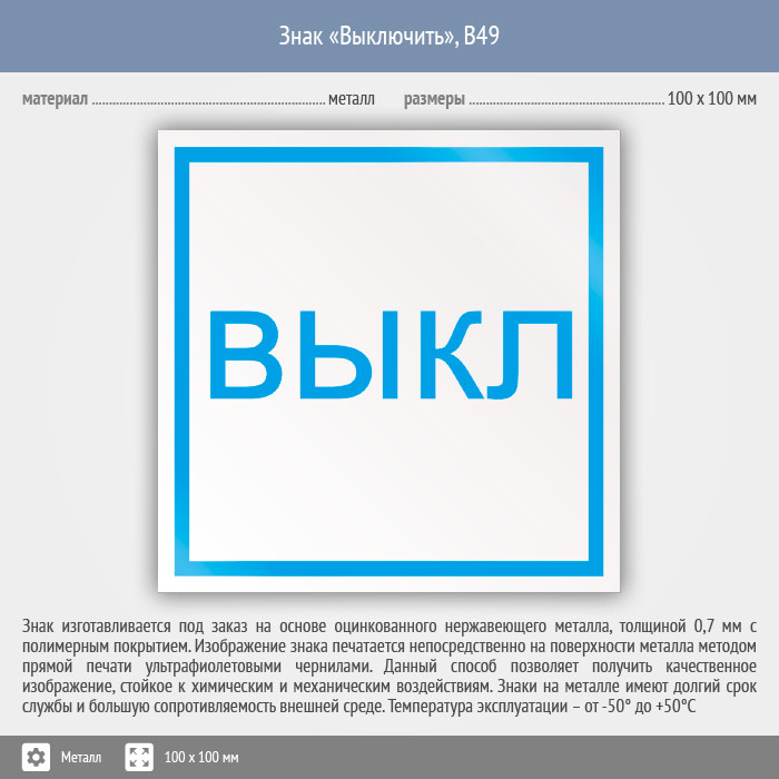 Знак «Выключить», B49 (металл, 100х100 мм) в Новокузнецке купить