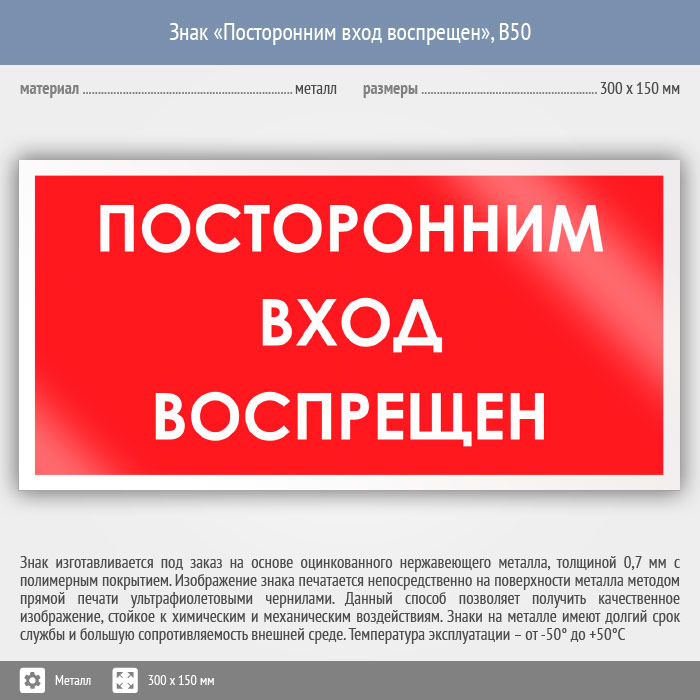 Знак «Посторонним вход воспрещен», B50 (металл, 300х150 мм) в Новокузнецке купить