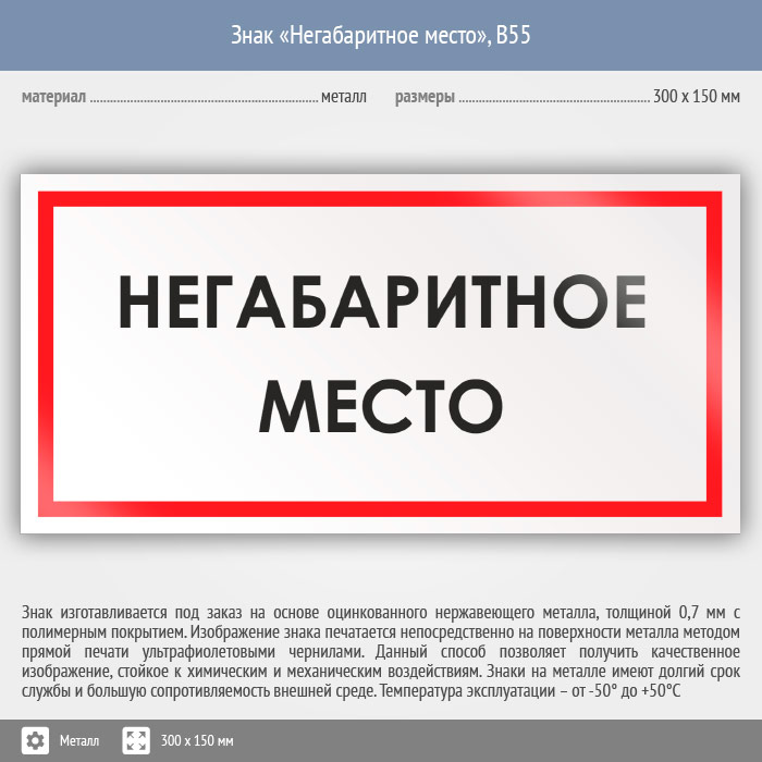 Знак «Негабаритное место», B55 (металл, 300х150 мм) в Новокузнецке купить