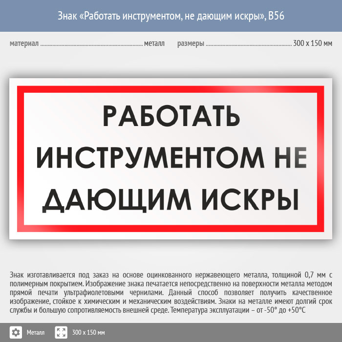 Знак «Работать инструментом, не дающим искры», B56 (металл, 300х150 мм) в Новокузнецке купить