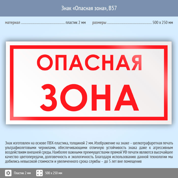 Знак «Опасная зона», B57 (пластик, 500х250 мм) в Новокузнецке купить