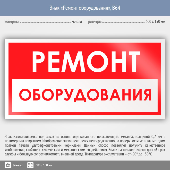 Знак «Ремонт оборудования», B64 (металл, 300х150 мм) в Новокузнецке купить