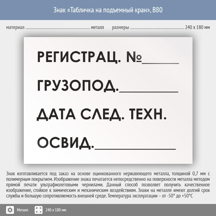 Знак «Табличка на подъемный кран», B80 (металл, 240х180 мм) в Новокузнецке купить