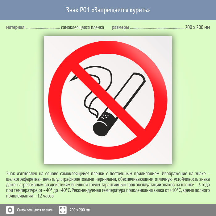 Знак P01 «Запрещается курить» (пленка, 200х200 мм) в Новокузнецке купить