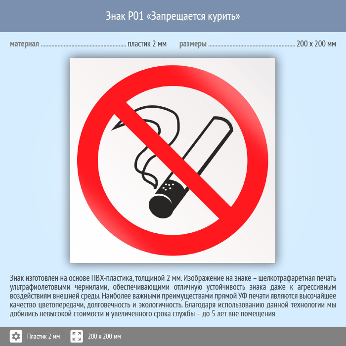 Знак P01 «Запрещается курить» (пластик, 200х200 мм) в Новокузнецке купить