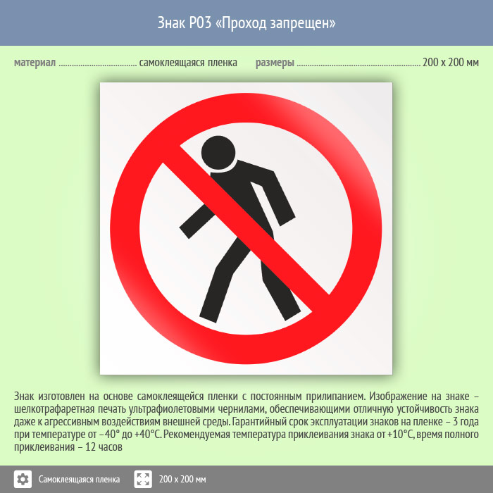 Знак P03 «Проход запрещен» (пленка, 200х200 мм) в Новокузнецке купить