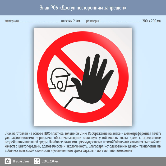 Знак P06 «Доступ посторонним запрещен» (пластик, 200х200 мм) в Новокузнецке купить