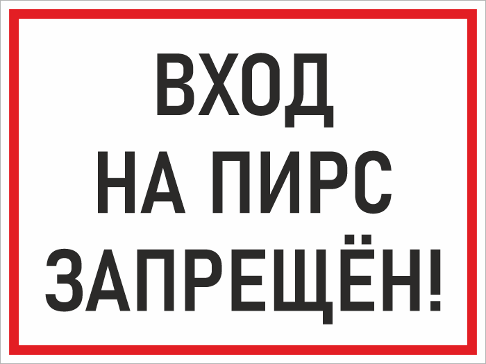 Знак «Вход на пирс запрещен!», БВ-05 (пластик 2 мм, 400х300 мм)
