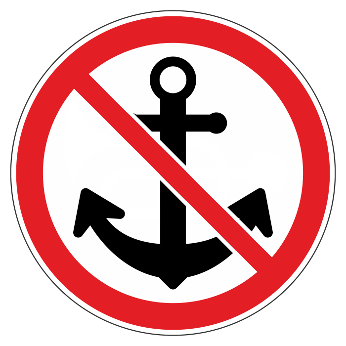 Знак «Якорь не бросать», МГ-7 (металл 0,8 мм, I типоразмер: диаметр 600 мм, С/О пленка: тип А коммерческая)