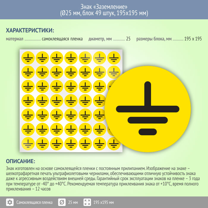 Знак (плакат) «Заземление», S46 (пленка, диаметр 25 мм, блок 49 штук, 195х195 мм) в Новокузнецке купить