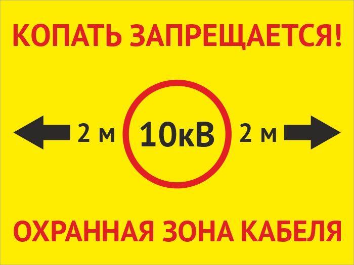 Табличка «Охранная зона кабеля 10 кВ. Копать запрещается», OZK-01 (металл, 400х300 мм) в Новокузнецке купить