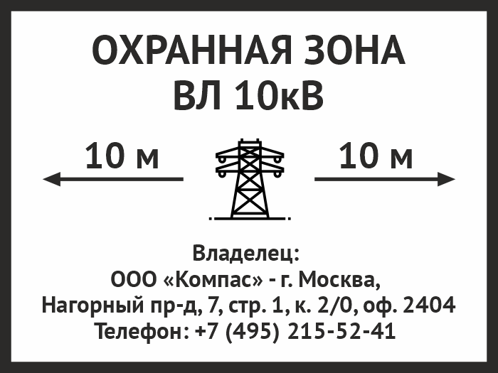 Знак «Охранная зона ВЛ 10 кВ (высоковольтной линии)», OZK-07 (металл, 400х300 мм) в Новокузнецке купить