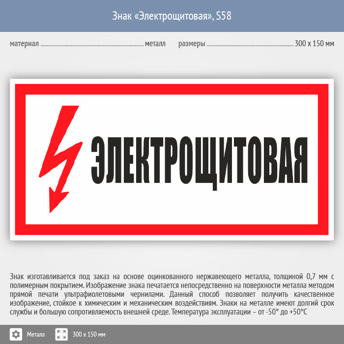 Знак (плакат) «Электрощитовая», S58 (металл, 300х150 мм) в Новокузнецке купить